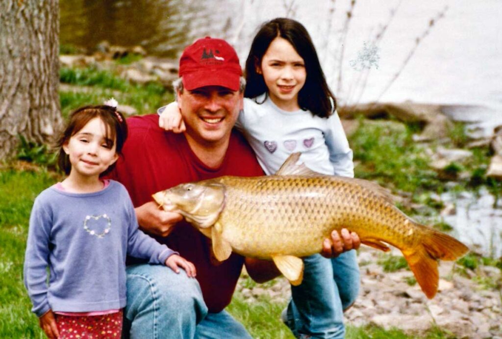 Ce n’est pas d’hier que l’auteur pêche la carpe. On le voit ici qui pose avec ses filles alors qu’elles étaient encore toutes jeunes.