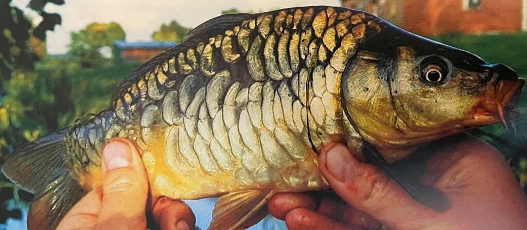 En plus d’avoir capturé de la carpe commune, j’ai eu la chance d’avoir croisé sur mon chemin en France une carpe miroir et une carpe cuir. Ces 2 carpes sont des sous-espèces issues de l’élevage de la carpe commune. Ces dernières sont moins effilées que la carpe commune et en grandissant elles deviennent plus rondes qu’allongées. La carpe miroir est partiellement recouverte de grosses écailles alors que la carpe cuir est entièrement dénuée d’écailles. Je sais qu’au Québec et en Ontario il y a quelques spécimens qui peuvent être capturés mais c’est très rare; j’ai même connu un pêcheur québécois qui avait eu cette chance.