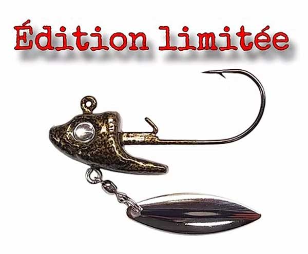 Le Underspin Walleye Series édition limitée est une tête de jig de type swimbait avec yeux translucides, dotée d’une cuillère en feuille de saule (willowleaf) qui procure un effet scintillant au leurre. Elle est munie d’un crochet de retenue, garantissant un maintien efficace du leurre souple. La conception de la tête permet de réduire le poids, car le courant exerce moins de pression sur celle-ci par rapport à une tête ronde. Tous les œillets d’attache sont dégagés et la peinture est de type Powder Coat, cuite à haute température pour garantir une résistance optimale. La dandinette est montée avec un hameçon de haute qualité, Eagle Claw. Disponible en poids de 3/8 et ½ oz.